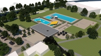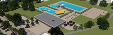 - Geplant sind ein 50-Meter-Schwimmerbecken nach Wettkampfnorm, ein Spiel- und Spaßbecken, ein Sprungbecken sowie ein überdachtes Kinderplanschbecken.