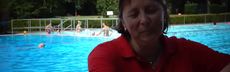 Sie blieb außen, denn sie selber konnte nicht richtig schwimmen. Neben dem Schwimmerbecken feuerte sie mich kräftig an. Dabei lief sie langsam neben mir her und kam dem Schwimmerbecken immer näher ohne es im Blick zu haben. Und dann passierte es. Ich versuchte weiter, mich über Wasser zu halten. Meine Mutter stürzte in das Schwimmerbecken. Die Umstehenden konnten sich nicht halten vor Lachen.