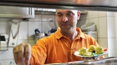 Dolmetscher kümmern sich um die Flüchtlinge, ein Dienstleister liefert das Mittagessen an, das im Kraftwerk aufgewärmt wird.